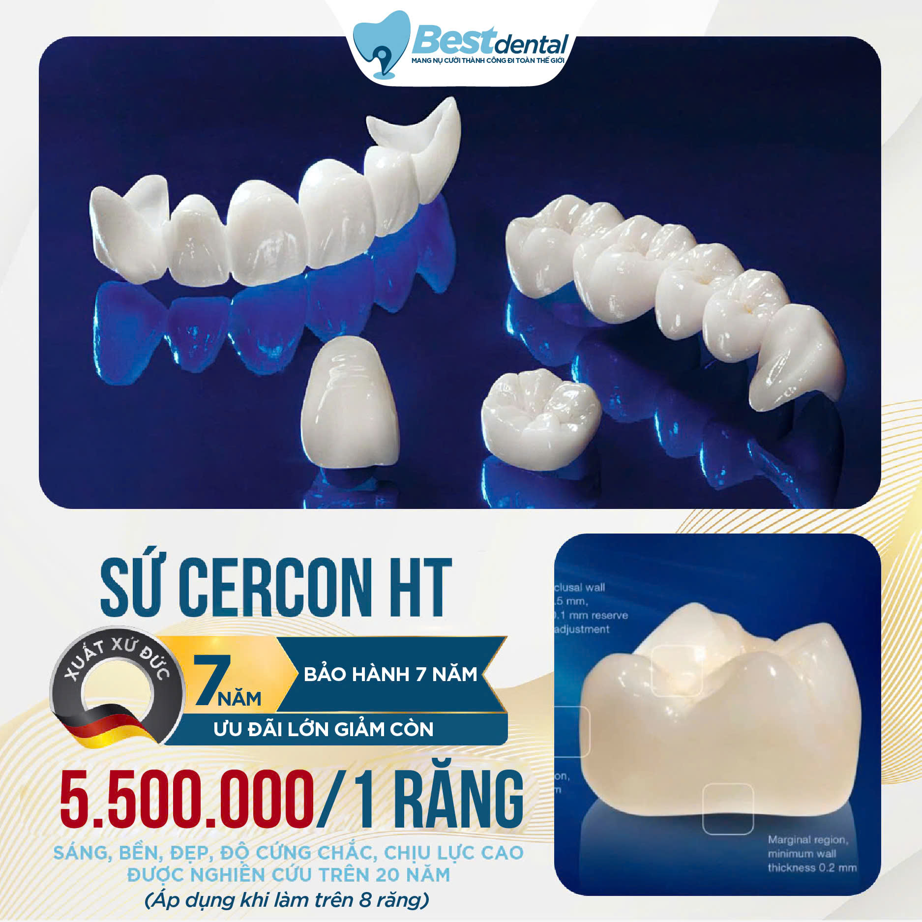 Tại Best Dental, mỗi ca sứ đều được thực hiện với sự tỉ mỉ, chuẩn y khoa và trách nhiệm lâu dài – bởi chúng tôi tin rằng giá trị thật của thẩm mỹ nha khoa nằm ở sự an toàn, bền vững và cảm giác thoải mái mỗi ngày.