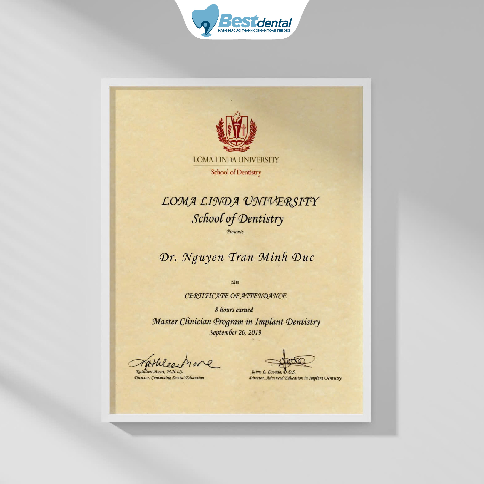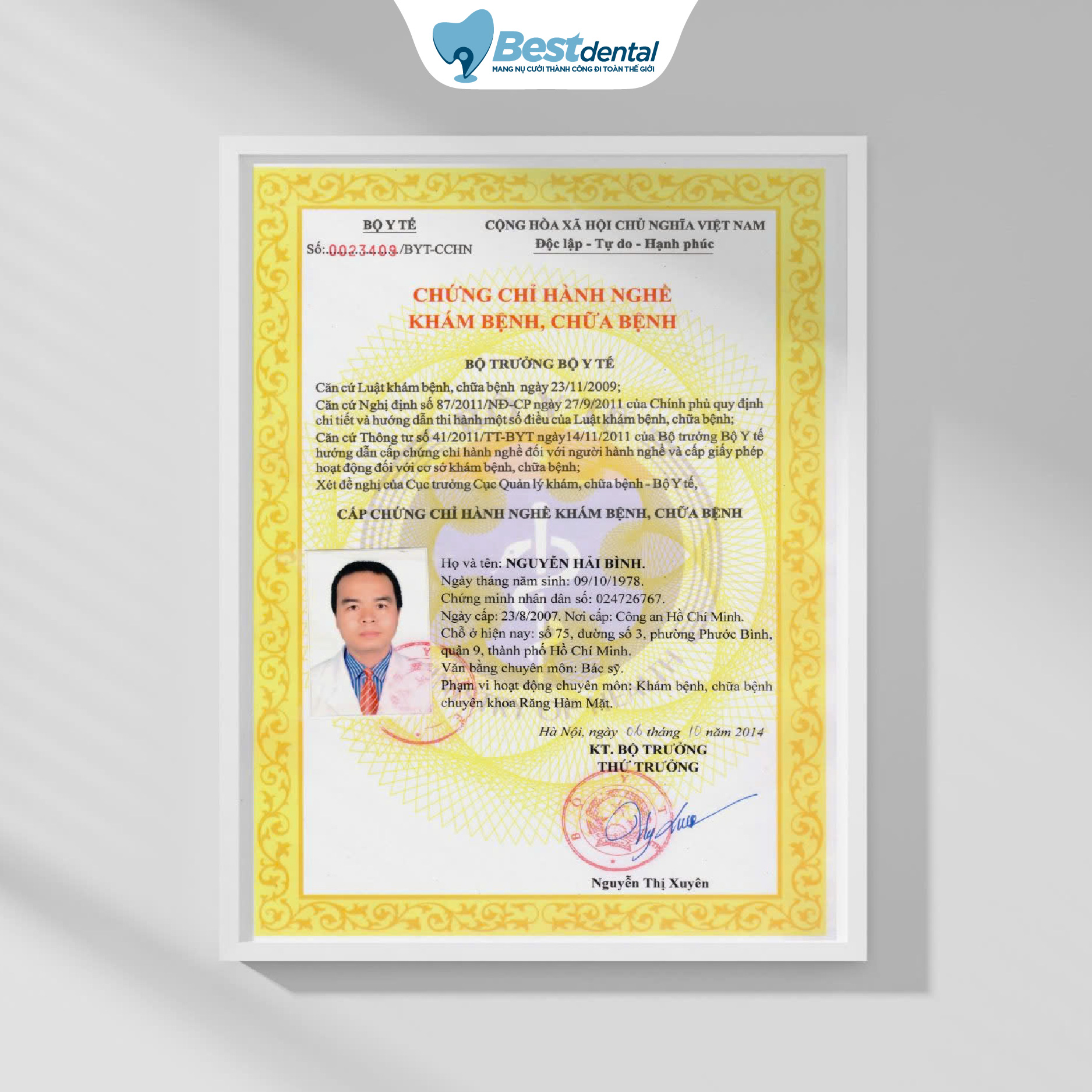 Đội ngũ bác sĩ tại Best Dental đều được đào tạo bài bản tại các trường đại học y khoa uy tín, sở hữu đầy đủ bằng cấp và chứng chỉ hành nghề hợp pháp theo quy định của Bộ Y tế. Đây là nền tảng quan trọng giúp đảm bảo mọi quy trình điều trị và thẩm mỹ răng miệng đều được thực hiện đúng chuyên môn, đúng chỉ định và an toàn tuyệt đối cho khách hàng.