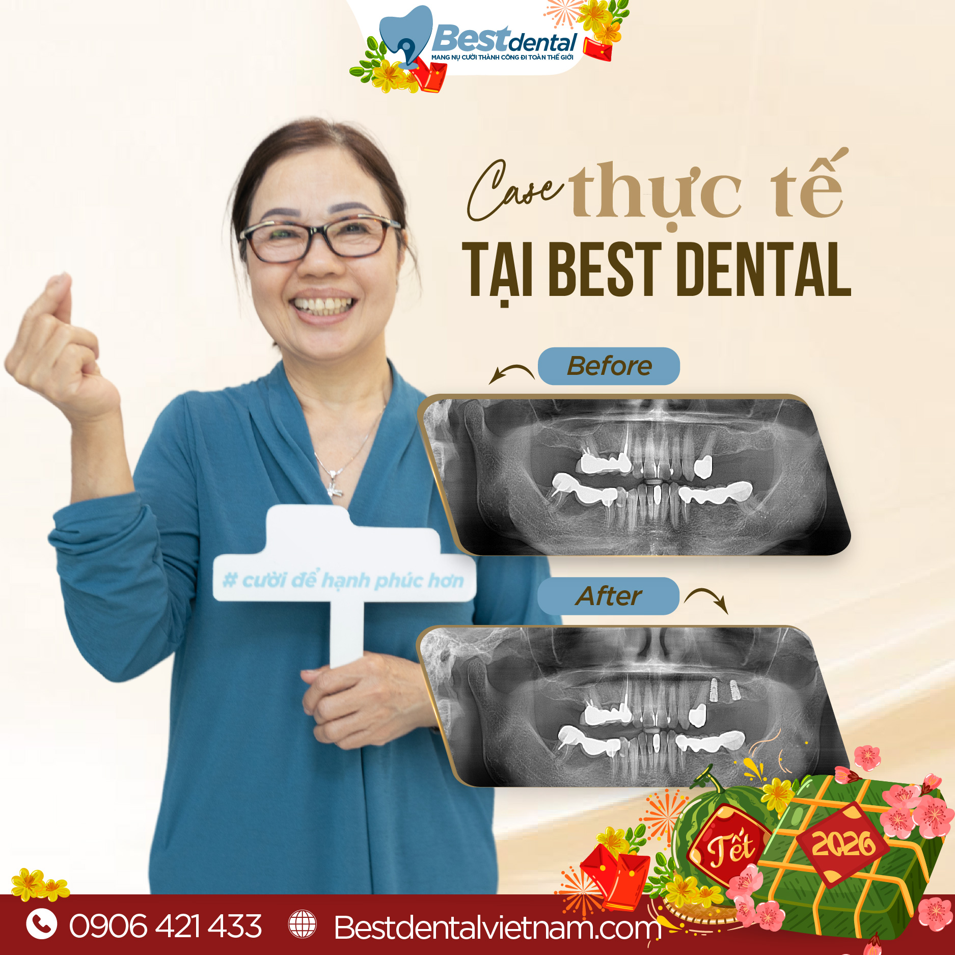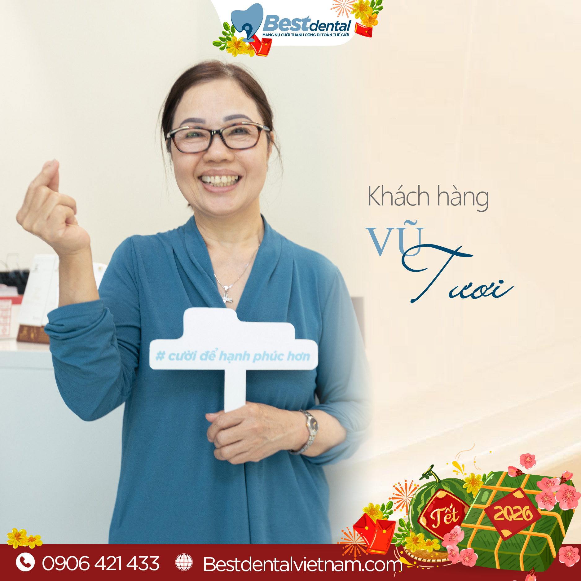 Best Dental xin chân thành cảm ơn cô Tươi đã tin tưởng và lựa chọn phòng khám trong hành trình phục hồi mất răng. Sự hài lòng, nụ cười và niềm tin của cô. Chính là động lực để đội ngũ Best Dental không ngừng nâng cao chất lượng chuyên môn và dịch vụ mỗi ngày.