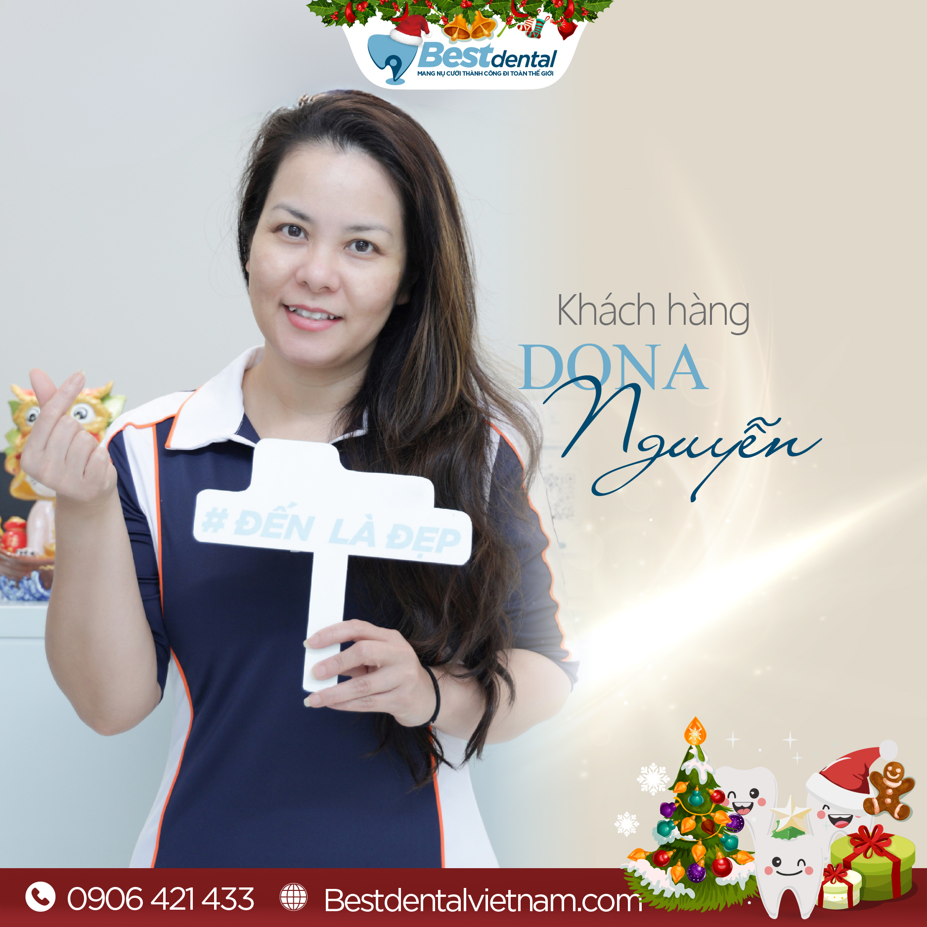 Best Dental chân thành cảm ơn chị Dona Nguyễn đã tin tưởng gửi gắm sức khỏe răng miệng và nụ cười của mình cho chúng tôi trong suốt hành trình điều trị.