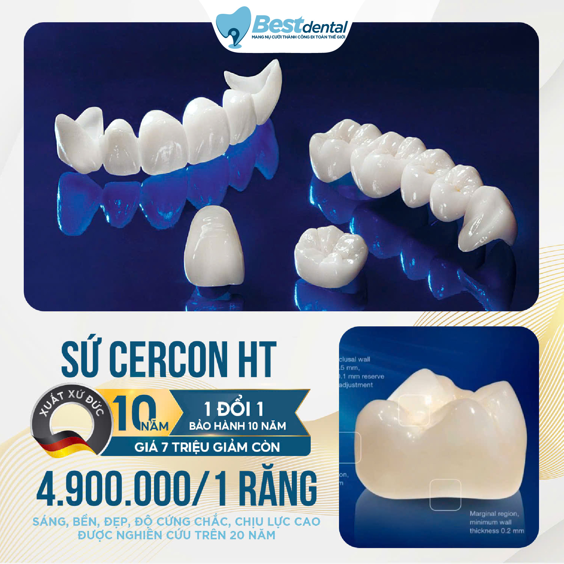 Tại Best Dental, mỗi ca sứ đều được thực hiện với sự tỉ mỉ, chuẩn y khoa và trách nhiệm lâu dài – bởi chúng tôi tin rằng giá trị thật của thẩm mỹ nha khoa nằm ở sự an toàn, bền vững và cảm giác thoải mái mỗi ngày.