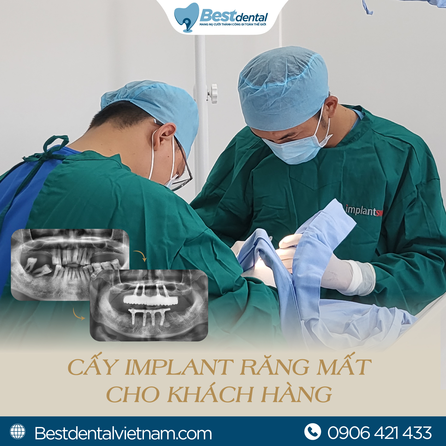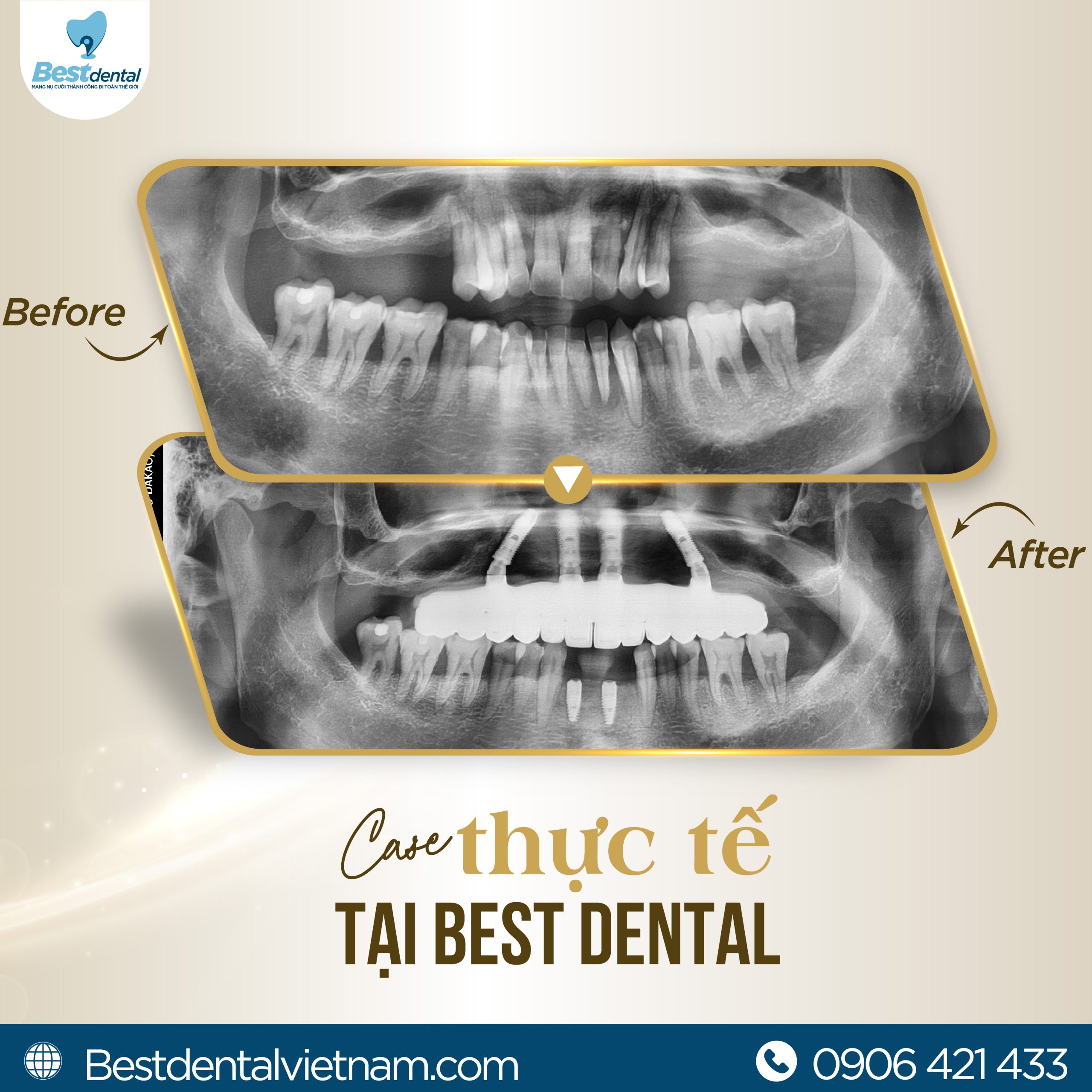 🌟 Đặt lịch tư vấn ngay hôm nay tại Best Dental để được khám và lên kế hoạch cấy Implant toàn hàm. Hãy để chúng tôi giúp bạn ăn nhai thoải mái, sở hữu nụ cười tự tin và nâng cao chất lượng cuộc sống chỉ sau 7 ngày!